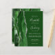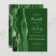 El borde izquierdo de esta elegante y moderna invitación a la boda incluye una pasarela de acuarela verde cazador bordeada por un falso purpurina de plata. El texto del personalizable combina escritura a mano, copperplate y cursiva en gris plateado claro sobre un fondo verde cazador. El reverso presenta un diseño de ágata verde y plateado a juego.