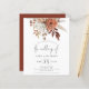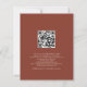 Invitación a la boda QR de Terracotta Florals. Una invitación semi-brillante más pequeña a precio reducido. Hay UNA por hoja. Añade tu código QR al sitio web de tu boda en la parte posterior para que tus invitados puedan ver todos los detalles en línea sin necesidad de gabinetes separados. Una tipografía de conjunto informal en negro para el encabezado principal el Boda de complementar el resto del texto que se puede personalizar fácilmente.