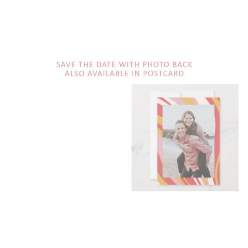 Invitación a la boda rosa con el color marfil-rojo de los 70 de Budget Retro Groovy