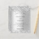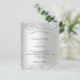 Un falso fondo metálico plateado. Decorada con purpurinas falsos, chispas. Personalice y agregue sus nombres y detalles del fiesta. Atrás: agregue la URL de su sitio web boda al código QR para obtener más información y registro RSVP. Esta invitación también está disponible en nuestra tienda sin el código QR en la parte posterior