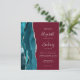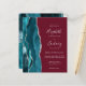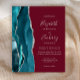 El borde izquierdo de esta elegante y moderna invitación a la boda incluye un verde azulado borde de ágata color azul azul adornado con un falso purpurina de plata. El texto del personalizable combina escritura a mano, copperplate y cursiva en color gris plateado sobre un fondo borgoñoso. El reverso presenta un diseño de ágata verde azulado y plateado a juego.