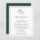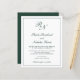Invitación a bodas de estilo tradicional con un diseño sencillo y clásico, con su monograma inicial y sus nombres en una caligrafía elegante dentro de un borde delgado. Todos los elementos de diseño están en verde forestal sobre un fondo blanco y pueden cambiarse en la herramienta de edición de diseño. Este elegante diseño es perfecto para un boda formal.