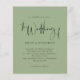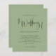 Invitación a la Boda Verde con Sage Script Un precio económico menor 4,5" x 5,6" alternativa. Disponible en un ALMACENAMIENTO DE TARJETAS SEMI-GLOSS de 110 lb que es la opción predeterminada (más grueso para las invitaciones), O UN ALMACENAMIENTO DE PAPELES DELGADOS SATIN FINISH DE 80 lb (ideal para los gabinetes). Los sobres son un extra opcional y son algo más grandes que el tamaño de la tarjeta. Este elegante diseño tiene una elegante tipografía en negro para el encabezado principal del Boda de sobre un fondo verde sabio. El resto del texto que puede personalizar fácilmente.