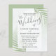 A sus huéspedes les encantará este elegante y sofisticado diseño tropical. Cuenta con una gran vegetación tropical en acuarela sobre un suave fondo de color verde salado. La caligrafía moderna se encuentra dentro de una capa transparente en forma de arco. Fácil de editar con sus detalles únicos.