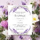 Un fondo blanco decorado con flores de lavanda de color agua Personaliza y tus nombres y detalles. Volviendo: lavanda, fondo de color violeta. 1 hoja = 1 borde impreso de invitación al borde.