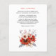 Un precio económico menor 4,5" x 5,6" alternativa. Disponible en un ALMACENAMIENTO DE TARJETAS SEMI-GLOSS de 110 lb que es la opción predeterminada (más grueso para las invitaciones), O UN ALMACENAMIENTO DE PAPELES DELGADOS SATIN FINISH DE 80 lb (ideal para los gabinetes). Los sobres son un extra opcional y son algo más grandes que el tamaño de la tarjeta. Con una fecha festiva de invierno en mente para tu boda virtual, flores rojas y crema, follaje y bayas decoran el lado derecho, y un ramo de coordinación más pequeño está en la parte trasera. Un guión de conjunto informal con Boda virtual es grande a la izquierda en el frente, y los detalles están en la parte posterior que usted puede personalizar fácilmente a su propia persona.