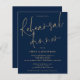 Hay dos opciones de papel entre las que elegir para este tamaño (4,5 x 5,6") en el rango de presupuesto. Para este producto, recomendaría el semi-brillo que es una tarjeta de 110 gsm, similar en grosor a una postal. La opción Satin es un papel mucho más delgado 80gsm. El valor predeterminado se establece en semi brillo. POR FAVOR, TENGA EN CUENTA QUE HAY UNA por hoja. Invitación a la cena de Boda de guión azul de la Marina de Oro presupuestada. Este moderno diseño cuenta con un elegante e informal guión para la cena de ensayo y el resto de la tipografía que puede personalizar fácilmente. También puede cambiar el texto y los colores de fondo en ambos lados si lo desea a través de la opción Personalizar adicional.
