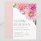 Invite a los huéspedes a su evento con esta invitación para el ensayo de personalizable. Cuenta con un ramo acuático florido de flores de dalia rosa. Personalice agregando sus detalles. Esta invitación a la cena de un ensayo de flores es perfecta para bodas de primavera y jardín.