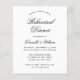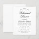 Una sencilla y minimalista invitación a la cena en blanco y negro. Sólo tiene texto negro sobre fondo blanco. Las palabras "Cena escénica" y el nombre están escritas en un elegante guión caligráfico.