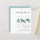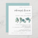 Invitación a la cena de Eucalyptus. Un precio económico menor 4,5" x 5,6" alternativa. Disponible en un ALMACENAMIENTO DE TARJETAS SEMI-GLOSS de 110 lb que es la opción predeterminada (más grueso para las invitaciones), O UN ALMACENAMIENTO DE PAPELES DELGADOS SATIN FINISH DE 80 lb (ideal para los gabinetes). Los sobres son un extra opcional y son algo más grandes que el tamaño de la tarjeta. Estilo minimalista moderno con una sola rama de eucalipto azul verde azulado sale por la página desde el lado izquierdo. La cena de ensayo se presenta en un estilo moderno de escritura a mano y se coloca encima de las hojas junto con los nombres, con los otros detalles debajo. Personaliza fácilmente los detalles a tu propia persona. Al revés, el fondo azul turquesa es el que coordina. Puede cambiar el texto y los colores de fondo a cualquiera de sus opciones para que coincidan con el tema de color boda.