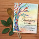 Invite a su familia y amigos a su cena de Acción de Gracias con esta invitación única y económica. Cuenta con un colorido árbol familiar de mosaicos sobre un fondo acuático. Personalizable fácil. Mosaico original y acuarela © Michele Davies.
