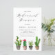 Invite a los huéspedes a su evento con esta invitación para el ensayo de personalizable. Cuenta con suculentos y cactus en macetas de acuarela. Personalice esta invitación de cactus agregando sus detalles. Esta invitación a un ensayo de boho es perfecta para cualquier tema de evento.