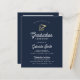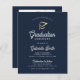 Una moderna tarjeta azul marino para la ceremonia de graduación. Los detalles del texto y la imagen se pueden personalizar.