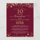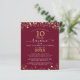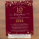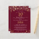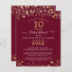 Invitación a una reunión de clase elegante y moderna con un presupuesto asequible (el ejemplo muestra 10 años) para cualquier año impreso en papel liviano de 4.5x5.6 pulgadas en lugar de cartón con estrellas y luces de oro, tipografía de escritura manuscrita elegante y un fondo de color personalizado (mostrado en marrón borgoña) que puede cambiar al color de la escuela o al color del tema fiesta. Todo el texto es editable para crear el suyo propio. Ideal para presupuestos conservadores y/o entrega a mano a los huéspedes. ASISTENCIA: Para obtener ayuda con la modificación o personalización del diseño, el cambio de color, el redimensionamiento, la transferencia del diseño a otro producto o desea coordinar elementos, póngase en contacto con el diseñador ANTES DE PEDIRLO a través de la pestaña del MENSAJE de chat de Zazzle que aparece a continuación o envíe un correo electrónico a makeitaboutyoustore@gmail.com.
