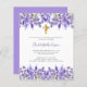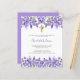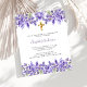 Un fondo blanco adornado con flores de lavanda acuáticas y una cruz dorada. Personalización y nombre y detalles. Volviendo: lavanda, fondo de color violeta. 1 hoja = 1 borde impreso de invitación al borde.