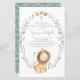 Invite a su familia y amigos a su evento de devoción de bebé con esta invitación de personalizable. Cuenta con ilustraciones acuarelas de un lindo precio de león bebé y una corona de follaje con un patrón a juego. Personalice agregando nombre, fecha, hora, lugar y otros detalles del evento. Esta invitación a la dedicación de león es perfecta para las dedicaciones de niños.