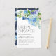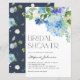 Invite a los huéspedes a su evento con esta invitación a la papelería de ducha de personalizable con flores, que incluye un ramo de agua de hortensias azules, rosas blancas y acentos verdes. Personalice esta invitación a la ducha de novia de hidrangea agregando nombre, hora, fecha y otros detalles del evento. Esta invitación botánica a la ducha nupcial es perfecta para duchas nupales de primavera, duchas de novias de invierno y ducha de novia en el jardín.