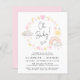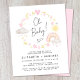 Las parejas de niñas pequeñas, cómodas, suaves y económicas, invitan a bañarse en una invitación con acuarelas rosas y amarillas inspiradas en el boho de un arcoiris, sol, corazones, estrellas, lunas y nubes y "¡Oh bebé!" en un elegante guión de caligrafía. Añada los nombres de la madre y del padre y los detalles de la ducha en una simple tipografía moderna.