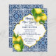 Baldosas azules y limón Amalfi Positano estilo mediterráneo ducha de bebé plantilla de invitación de presupuesto estilo Marruecos frontera tallada, el principal apretón de mamá ducha de bebé género neutro.