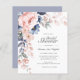 Anuncie y celebre el próximo boda nuestra moderna invitación al presupuesto de la ducha con flores de color azul rosa pastel y azul índigo. Con una hermosa coloración de acuarela botánica. Simplemente personaliza con los detalles de su fiesta haciendo clic en el botón personalizar para reorganizar y formatear el estilo y la ubicación del texto. En el reverso de esta invitación se muestra un patrón botánico de coordinación y un color de fondo que puede cambiar fácilmente. CONSEJO: Añada nuestros artículos complementarios o coincidentes en nuestra colección de tiendas con este diseño
