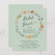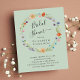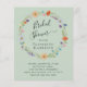 Invitación a una ducha de novia verde salada, de inspiración boho, con una cortina de flores florales y una "ducha de novia", en un elegante guión de swash.