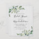 Invite a amigos y familiares a honrar a la futura novia con esta asequible invitación a la ducha de agua con hojas de eucalipto a la acuarela sobre un fondo de madera clara.