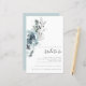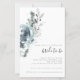 Modernas Festividades Florales Foliage Bridal Shower Invitation. Un tamaño mayor de 5,5" x 8,5" a un precio económico, en una BOLSA DE TARJETAS SEMI GLOSS de 110 lb, ideal para invitaciones, aproximadamente con el mismo espesor que una postal, o un elegante stock LINEN de 110 lb - para un lujo, ligeramente más delgado a un gran valor. TENGA EN CUENTA QUE LOS ENVELOPES OPCIONALES SON UN POCO MÁS GRANDES DE TAMAÑO A 6,75" x 9" aprox. Esta alternativa de tamaño de presupuesto también está disponible en otras opciones de papel. El papel FELT de 100 libras es de color buff, NO blanco, por lo que añade un toque rústico. El material de papel MATTE 80lb es blanco brillante, para impresión crujiente, ideal para menús y programas, mientras que el papel SATIN de 80 libras es delgado y liviano, ideal para gabinetes. Elegante follaje acuarela y flores en tés y polvo azul a la izquierda y tipografía alineada a la derecha. Personaliza fácilmente el texto a tus propios detalles.
