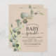 Presupuesto Terracota Eucalyptus Greenery Suculento Agua Botánica Primavera Género Neutral Niño Niño o Niña Bebé Sprinkle Invitaciones a la ducha sobre fondo blanco - incluye hermosa y elegante tipografía con hojas botánicas modernas y vegetación para la celebración especial de Madre a Ser.