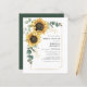 Invitación a la ducha nupcial con Eucalyptus Bridal Sunflower Budget. Cree una moderna tarjeta de invitación a la ducha con flores de girasol floral con esta bonita plantilla con un bonito ramo rústico floral y una moderna tipografía simple. CONSEJO: En la colección que aparece a continuación se pueden encontrar tarjetas de suite boda como RSVP, programas de boda, carteles, tapiz, etiquetas de regalo, carteles y otros agujeros y artículos de boda.
