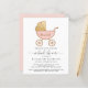Cuando todos no puedan estar juntos, celebren a la futura madre con una ducha virtual en línea para bebés. Esta encantadora invitación a la ducha de bebé para una chica con un presupuesto reducido incluye una acuarela rosa pastel y una acuarela dorada de un carrito de bebé de estilo retro y una "ducha virtual" escrita en un guión elegante. Puede personalizar el texto del carro o dejar en blanco.