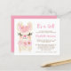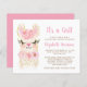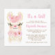 Sencilla y linda invitación a la ducha virtual de una niña con presupuesto reducido, con un ilustracion acuarela de una llama de bonito con flores rosadas y purpurina de oro. "¡Es un Chica!" y el nombre de la futura madre está en un divertido guion rosado y puedes personalizar los detalles de ducha virtual en la tipografía de oro.