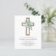Presupuesto Sage Green Boy o Chica Eucalyptus y Relieve metalizado dorado Cross Botanical Greenery Watercolour Christian Religious Baptism Invitaciones.
