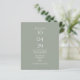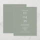 Un diseño moderno de invitación a bodas con presupuesto minimalista, que incluye detalles especiales de fecha y boda en una tipografía clásica de moda sobre un fondo verde sabio. Diseñado por Thisisnotme©
