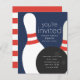 Una moderna invitación para una fiesta de cumpleaños neutral de género con boliche y 2 bolicines. Invite a los amigos a celebrar y jugar un divertido juego de bolos para celebrar el cumpleaños de su hijo. Se puede eliminar el retrovisor de patrones de coordenadas para dejar espacio a información adicional de fiestas como instrucciones.