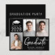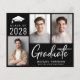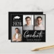 Moderna invitación para una fiesta de graduación negra y económica que incluye un collage de 3 fotos, "Graduado" en letras blancas grandes y el año de clase, nombre y escuela o universidad del graduado en simple tipografía blanca. Agregue los detalles del fiesta en el reverso.