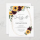 Esta invitación a la soltera es perfecta para un fiesta con temática de girasol. El diseño incluye girasoles acuáticos y rosas burdeos, con vegetación de eucalipto sabio y acento dorado. Personalice todos los detalles de su fiesta.