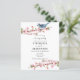 Invitación de boda para fiesta de noche con rama de flor de cerezo y pájaro azul con presupuesto. El color y tipo de letra se pueden cambiar a través del menú de edición. También puede cambiar los colores del texto y del fondo en ambos lados si lo desea. Una buena relación calidad-precio, alternativa más pequeña de 4,5 x 5,6 pulgadas, configurada por defecto en la opción semibrillante que se recomienda para invitaciones y tiene un grosor similar al de una postal. La opción de satén es mucho más delgada.