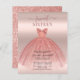 Esta invitación de cumpleaños es perfecta para una princesa que celebra su dulce cumpleaños número 16. Presenta un vestido color rosa y un falso purpurina de oro rosa con escritura moderna y tipografía popular. Reemplace fácilmente los detalles del fiesta haciendo clic en el botón "Personalizar" situado arriba.