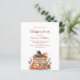 Un fondo blanco. Decorado con calabazas, utensilios de cocina, un rústico cartel de madera con el texto: Festividad de Acción de Gracias. Personalice y agregue los detalles del fiesta. 1 hoja = 1 borde impreso de invitación al borde.