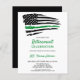 Ligeras invitaciones a la jubilación militar en la Línea Verde o invitaciones de los militares a ir de fiesta. Estas invitaciones del partido de la Línea Verde Delgada son perfectas para una jubilación militar, despliegues militares, celebración de la casa de bienvenida militar, graduación militar y soldados que se van fiesta. Bandera delgada de la Línea Verde representa a todo el ejército, ejército, protección de fronteras, patrulla fronteriza, oficial de conservación, guardabosques, guardián de juegos, aplicación federal de la ley. Personalice esta invitación a la bandera militar con los detalles del evento, nombre y fiesta de sus soldados. Vea nuestra colección de regalos militares de retiro, regalos de graduación militar, favores partidarios y suministros. DERECHOS RESERVADOS © 2021 Judy Burrows, Black Dog Art - Todos los derechos reservados. Bandera delgada de la línea verde del retiro militar presupuestado