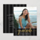 Estar orgulloso, regocijarse y anunciar al mundo que su grado favorito ha alcanzado su hito con esta impresionante, sencilla, moderna, personalizada invitación de presupuesto. Espumoso, elegante, falso guión de caligrafía purpurina dorado, tipografía sans serif blanca y una foto de su elección superponen un fondo rayado negro y gris oscuro. Personalice el texto del personalizado con el nombre del graduado, el nombre de la escuela, el año de clase y la fecha de graduación. En la parte de atrás, añada su nota personal, la próxima escuela a la que asisten, información del fiesta, etc. ¡Garantizado para añadir un toque elegante a su ocasión especial! Simplemente reemplace la foto de ejemplo con una de las suyas, escriba la información de tu graduado, personalizar el mensaje en la parte posterior, y puede personalizar fácilmente esta invitación de invitación de graduación de presupuesto. Por favor, envíame cualquier pregunta o petición.