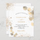 Un fondo blanco decorado con eucaliptos dorados y polvo de purpurina de oro falso. Personaliza y tu nombre y detalles de la ceremonia. Letras de color negro y dorado. Parte posterior: fondo blanco con polvo purpurina falso dorado.