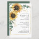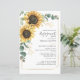 Postal floral de la invitación a la participación de Eucalyptus Sunflower con esta bonita plantilla con un bonito ramo rústico floral y una moderna tipografía simple. CONSEJO: En la colección que aparece a continuación se pueden encontrar tarjetas de suite boda como RSVP, programas de boda, carteles, tapiz, etiquetas de regalo, carteles y otros agujeros y artículos de boda.