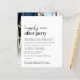 Sencilla invitación de boda económica y invitación a la recepción. El frente presenta "Feliz eterno después del Fiesta" en una mezcla de escritura contemporánea y tipografía audaz moderna. Personalice su mensaje e invitación con más detalle y agregue sus nombres en un script tipo firma. En el reverso aparece la foto de su boda, los nombres y la fecha del boda. Este papel semibrillante de presupuesto es similar en peso al papel fotográfico. También está disponible una versión más grande del stock de tarjetas 5x7 (envíenos un mensaje para el enlace).