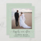 Elegante y económico, elegancia verde sabio o invitación boda privado e invitación a la recepción. La parte frontal muestra su foto, "felizmente siempre después" en un guión de moda con toques y sus nombres, fecha de boda y ubicación. En la parte posterior, personaliza la invitación de tu boda y la recepción o la invitación de tu fiesta, ingresa la dirección URL de tu sitio web boda para crear un código QR para que los invitados puedan escanear para ver las fotos de tu boda, todos los detalles y para RSVP en línea y firmar tus nombres casados en un guión tipo firma.