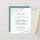 Estas invitaciones a la recepción de bodas asequibles y económicas son la elección perfecta para disfrutar de clase, estilo y belleza a buen precio. Diseñadas para los invitados a la recepción, pero no para la ceremonia, cuentan con un fondo blanco clásico con detalles ornamentales de encaje de Relieve metalizado de imitación plateada en las esquinas. La tipografía incluye lujosas letras verde azuladas o turquesa para un estilo que es a la vez simple y elegante. Una forma maravillosa de invitar a tus amigos y familiares a compartir tu alegría en tu día especial sin romper el banco.