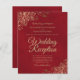 Estas invitaciones a la recepción de bodas asequibles y económicas son la elección perfecta para disfrutar de clase, estilo y belleza a buen precio. Están pensadas para los invitados a la recepción, pero no para la ceremonia, y cuentan con un fondo de color rojo cardenal con detalles ornamentales de Relieve metalizado de imitación dorada en las esquinas. La tipografía incluye lujosas letras de guiones dorados para un estilo que es a la vez simple y elegante. Una forma maravillosa de invitar a tus amigos y familiares a compartir tu alegría en tu día especial sin romper el banco.
