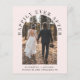 Elegante y económico, decoración rosa claro o invitación boda más pequeña e invitación a la recepción. La parte frontal muestra la foto del día de la boda en un marco abovedado y "Feliz eterno después" en una tipografía elegante. Agregue sus nombres, fecha de boda y ubicación. Al revés, personaliza la invitación y la invitación a la recepción y agrega los nombres en un script con estilo de firma.