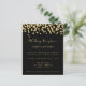 Confetti Purpurina de Oro Presupuestario en Invitación a la Recepción de Boda de Fondo Negro. Una alternativa de valor por dinero menor de 4,5 x 5,6 pulgadas en defecto de la opción semi brillo que se recomienda para las invitaciones y es un grosor similar al de una postal. La opción del satén es mucho más delgada.
