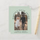 Elegante y asequible elegancia verde sabio o invitación boda más pequeña e invitación a la recepción con tu foto en un marco abovedado y "Feliz eterno después" en una tipografía elegante. Bajo la foto, agregue sus nombres, fecha de boda y ubicación. En el reverso, personaliza la invitación y los detalles de fiesta o recepción y agrega los nombres en un guión tipo firma.